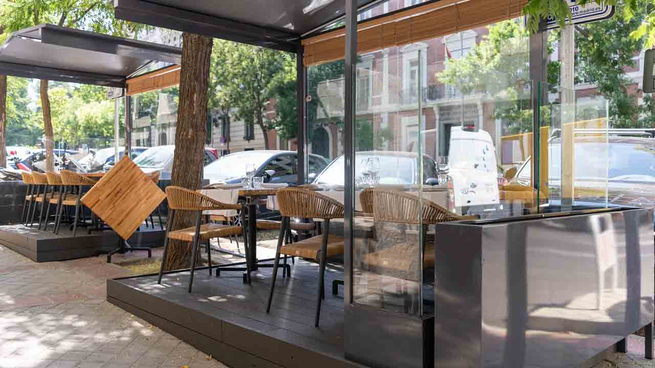 El trabajo más reciente que hemos realizado ha sido la transformación de la terraza exterior. La instalación de unas pérgolas metálicas y grandes vidrios de seguridad se ha completado con el montaje de una tarima especial para exteriores.