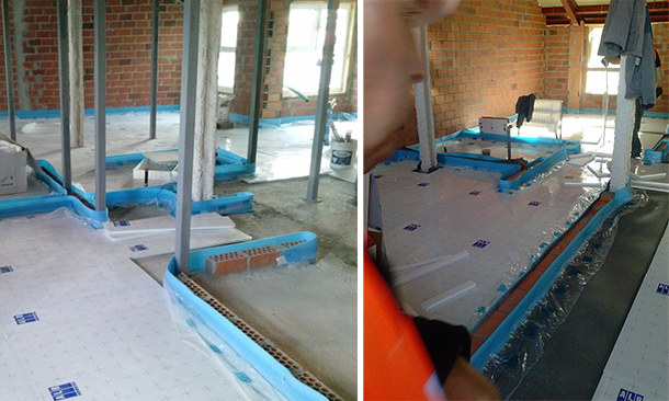 01_Desarrolla-edificio-viviendas-suelo-radiante-aislante-alta-densidad_610px Colocación de la cinta perimetral protectora y el panel aislante de alta densidad