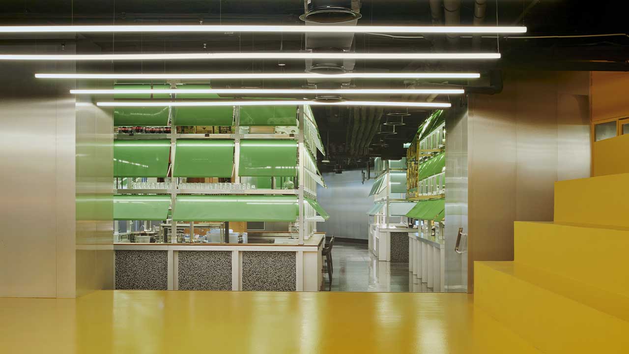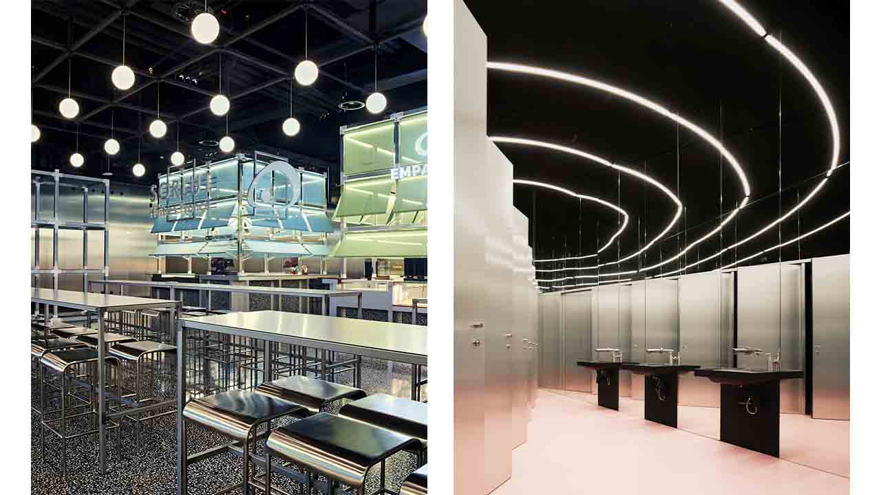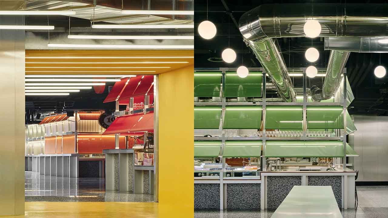 Para crear distintos ambientes y amplificar la poderosa imagen con la que nace el mercado, se ha creado un degradado cromático que recorre cada rincón del Bernabeu Market, acentuando así la sensación en el visitante de que cada esquina del mismo es distinta, aunque sus elementos sean estructuralmente similares.