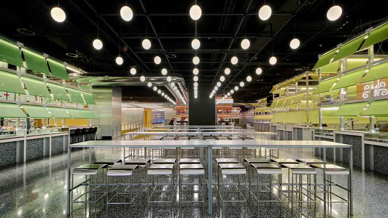 El proyecto promovido por Amicalia Inversiones en colaboración con el Real Madrid y diseñado por los equipos de interiorismo de Burr Studio y Studio Animal evoca el ambiente del barrio de uno de los muchos barrios gastronómicos que se pueden encontrar en la capital de España.