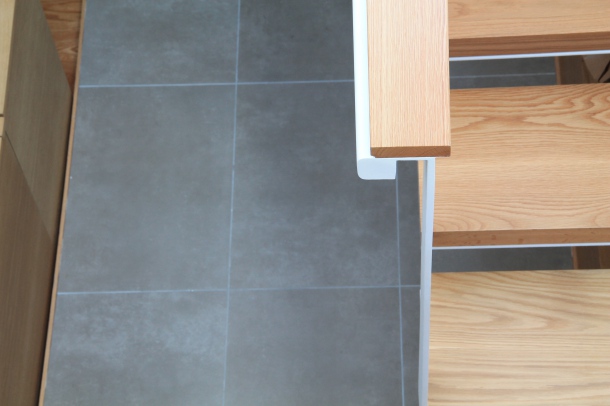 Se aplica a la estructura de la escalera un acabado de pintura plástica de color blanco mate.