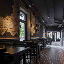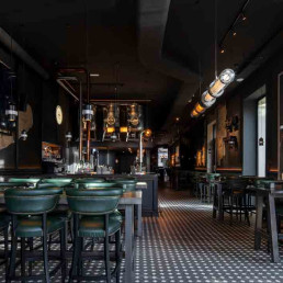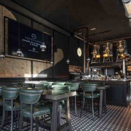 Una completa oferta en la que destaca también el innovador diseño de suministro de cerveza creado por Estrella Galicia. Dos baterías de tanques integrados en un bloque central y en un sistema de tuberías conectadas con la estética del Hemingway permiten circular la cerveza de un extremo a otro, amplificando la ya de por sí espectacular personalidad del establecimiento.