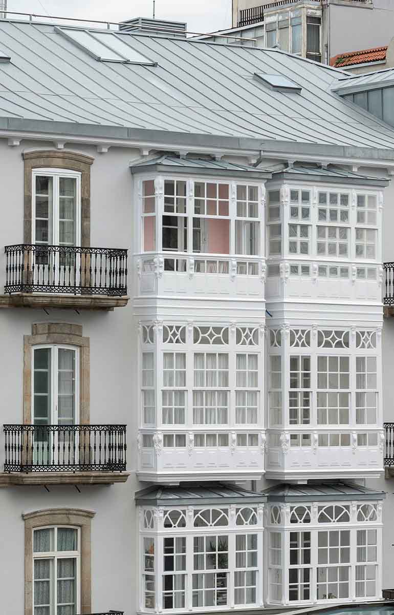 El inmueble rehabilitado planteaba patologías en algunos elementos de madera en sus clásicas galerías en fachada, subsanadas con la restauración de las mismas. Además, se han mejorado las condiciones estéticas por las cuales está catalogado este céntrico y singular edificio coruñés.