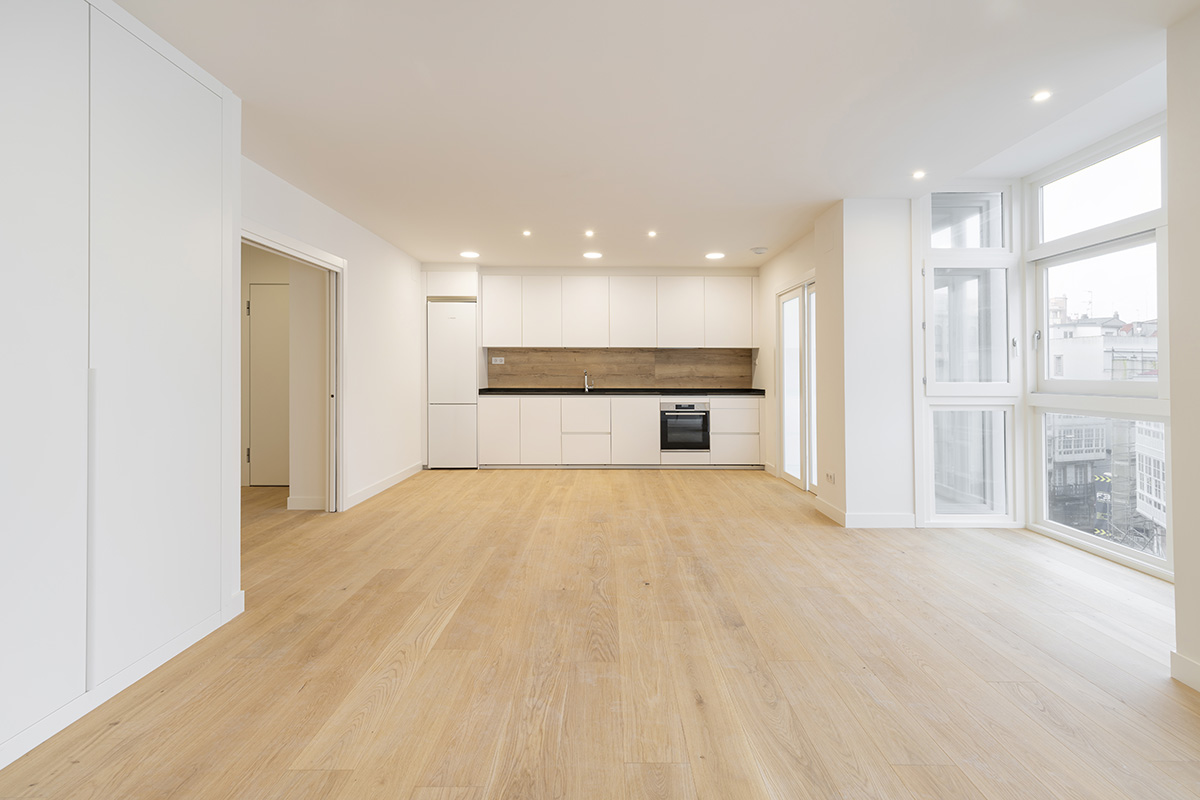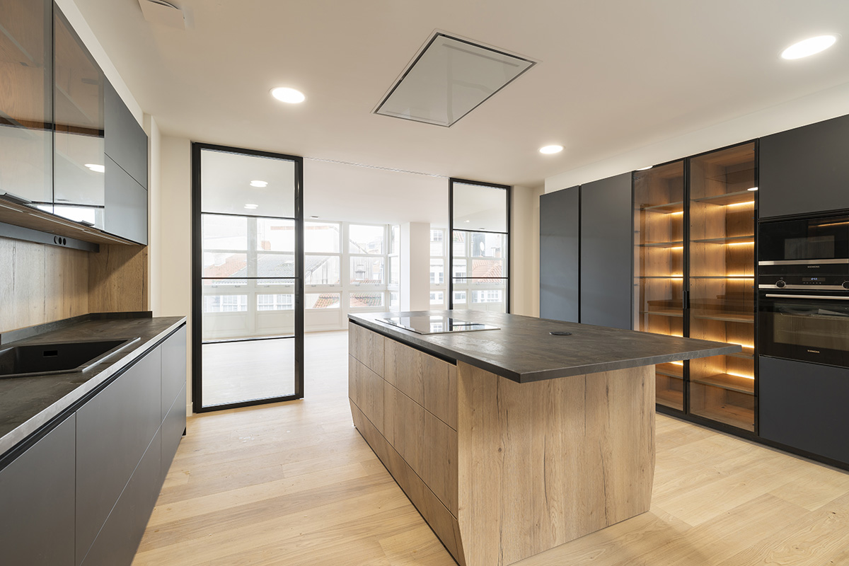 El proyecto de rehabilitación, ubicado en la céntrica calle de Santa Catalina de A Coruña, incluyó una importante mejora en eficiencia y confort gracias a la optimización y uso de instalaciones y sistemas innovadores, por ejemplo, el de recuperación de calor, que permite el control de la humedad interior.