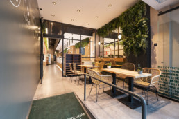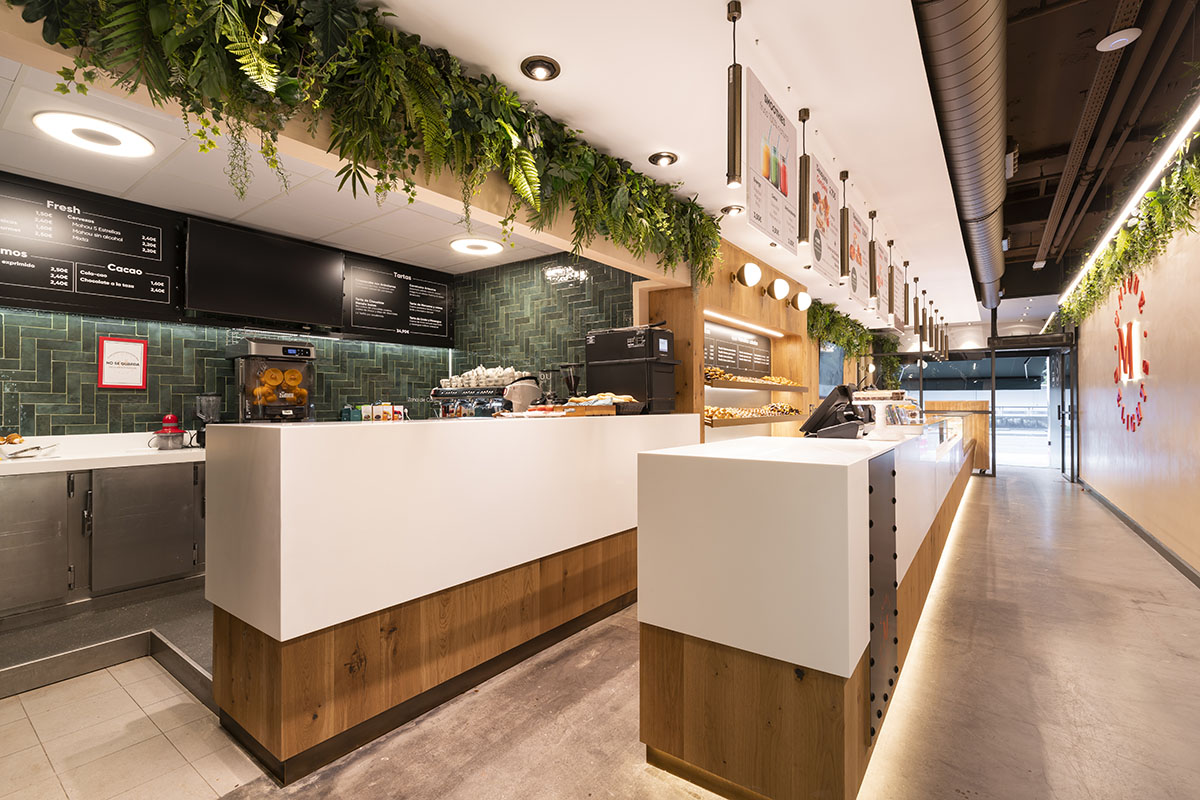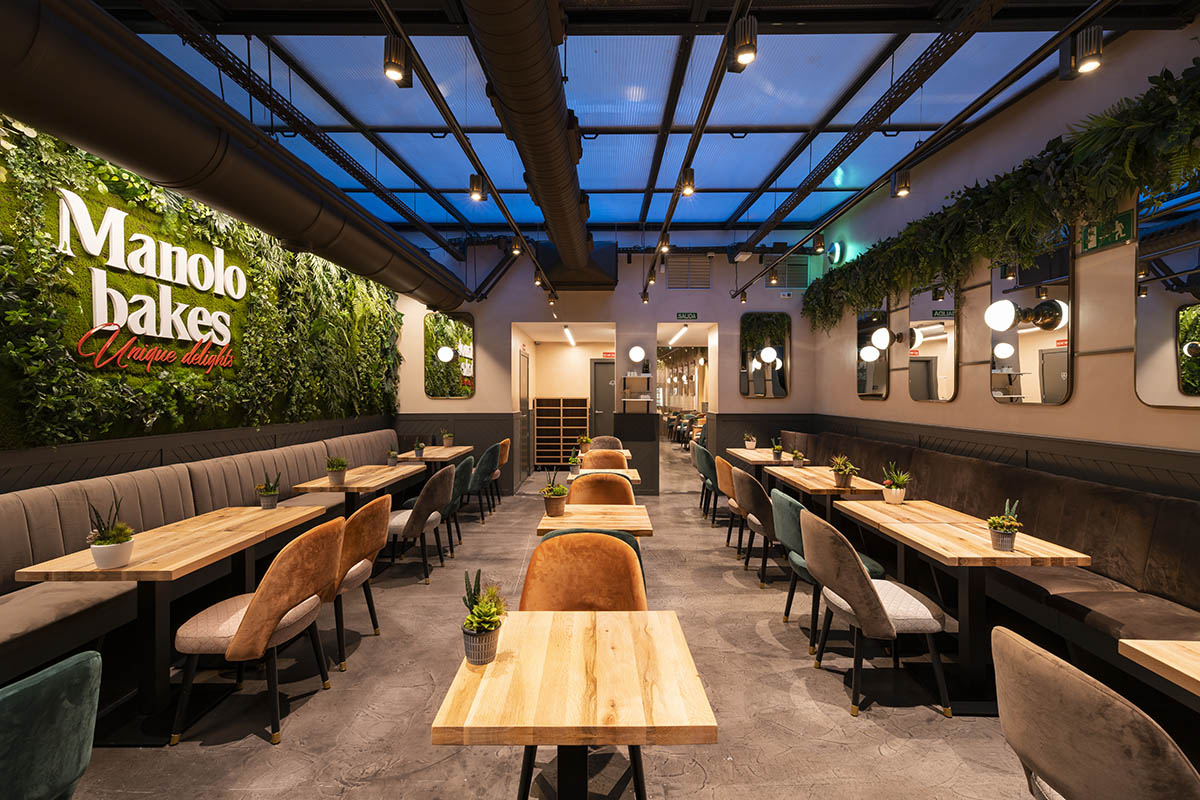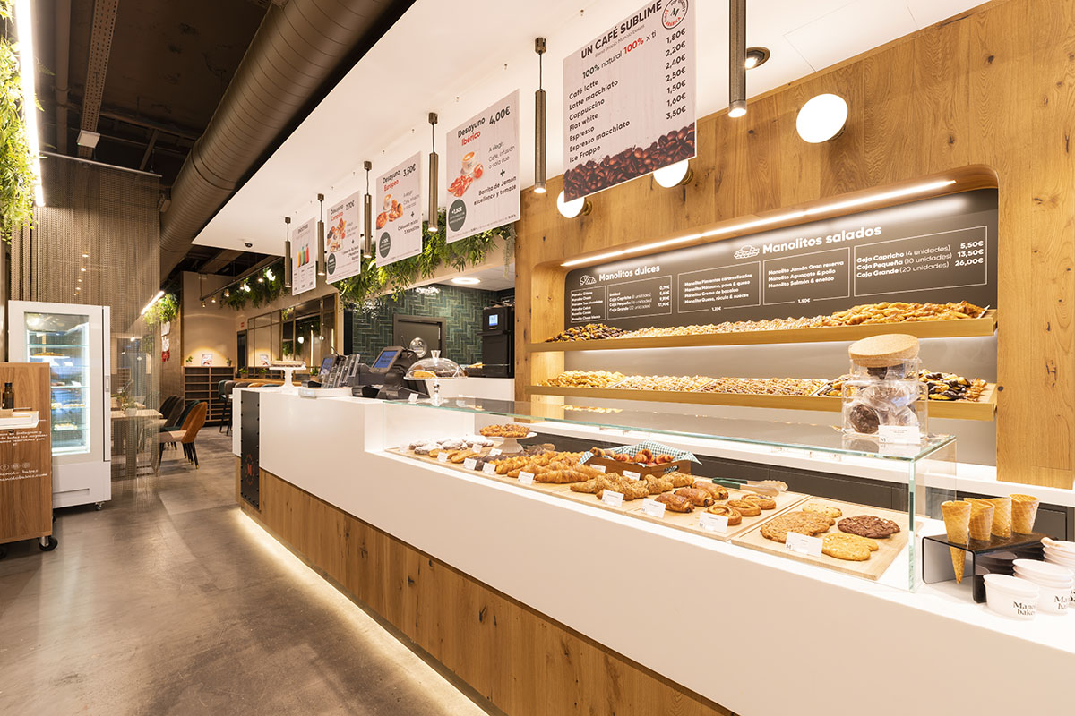 Desarrolla has carried out the integral remodelling of the space, formerly known as Pura restaurant. The renovation was carried out in twenty days and the decoration of the space has been completely adapted to the brand image, integrating the existing concrete pavement with walls covered in microcement and different decorative elements all Manolo Bakes brand seal. The ‘manolitos’ fever arrives in Galicia. The famous ‘croissants’ from Madrid arrive along with an extensive variety of sweets and a wide commercial space located in Cantón Grande street in A Coruña. This is the first Galician location of this renowned baker brand.