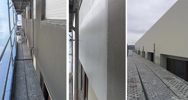 Uno de los acabados recomendados es la pintura de resina de silicona, que aporta al sistema una serie de ventajas, tales como la resistencia al agua y permeabilidad al vapor de agua, y la durabilidad del sistema.