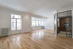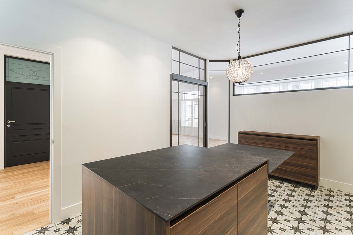 Hemos finalizado la reforma integral de un piso ubicado en un edificio antiguo de principios del siglo XX. Se trata de una intervención que respeta las líneas clásicas de la edificación, pero las adapta a un diseño actual aportando las ventajas de las instalaciones modernas.