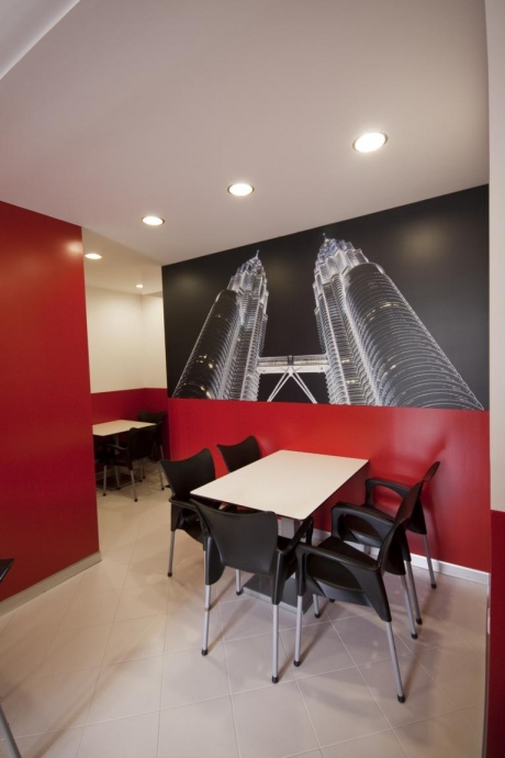 Adecuación de local comercial para implantación de la cadena de comida rápida «Torritos calientes». La ejecución de la obra se realizó en 3 semanas, destacando la situación céntrica de la misma lo que exigió una perfecta organización en la gestión de acopios y suministro de materiales.