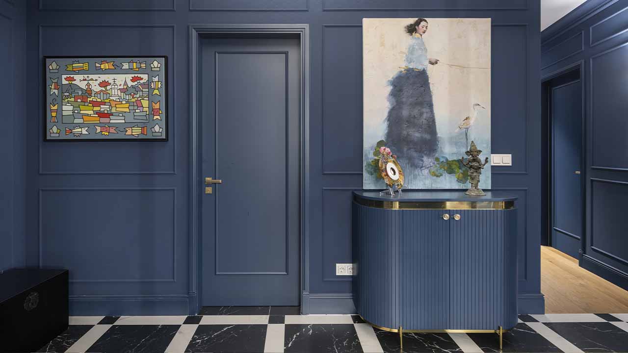 La nueva identidad del inmueble es el resultado de una reforma integral que ha viajado al pasado para crear un presente totalmente nuevo. Los suelos de espiga, combinados en algunos puntos con el mármol, la poderosa presencia de las molduras y los juegos con materiales y tonos dotan a la vivienda de una estética que combina clasicismo y vanguardia.