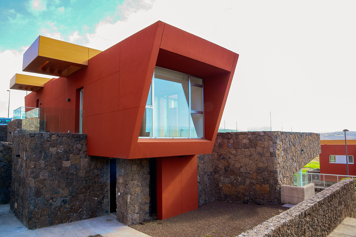 Las viviendas destacan por integrar en sus diseños materiales modernos, como su fachada ventilada de fenólico y la barandilla de cristal, con elementos integradores en el paisaje de la zona, como son los muros de piedra natural extraída del propio lugar.